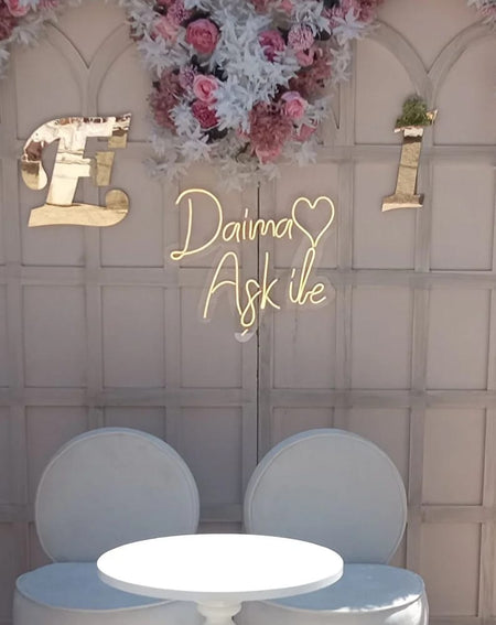 Düğünümüz için aldığımız tabela harika. Işık rengi canlı, fotoğraflarda müthiş durdu. Herkes çok beğendi