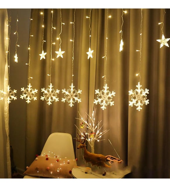 Yılbaşı ve Kış Dekorasyonu: 120 LED Kar Tanesi, evlerin pencerelerinde, balkonlarında veya salon duvarlarında kullanılarak anında neşeli ve şık bir yılbaşı atmosferi oluşturur.
